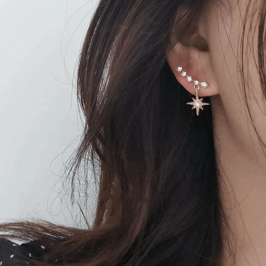 Constellation CZ and Silver Ear Climber Stud Earrings