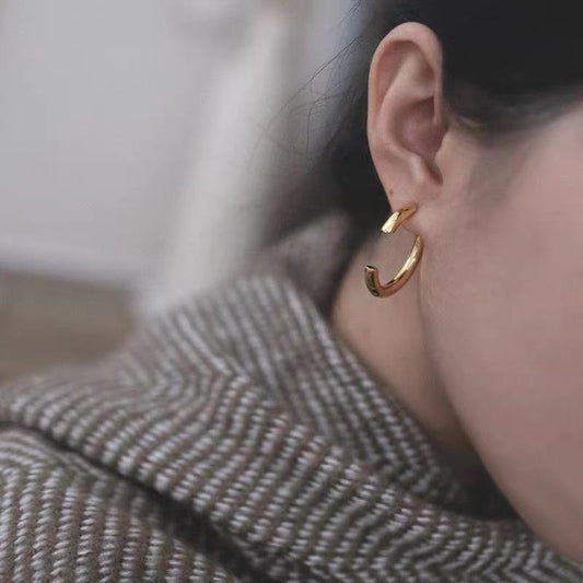 Reversible C-Shaped Gold-plated Brass Earrings in two Sizes