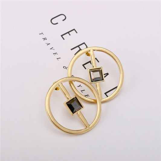 Frosty Wind Geometric Gold Circle Stud Earrings with Square Gemstone